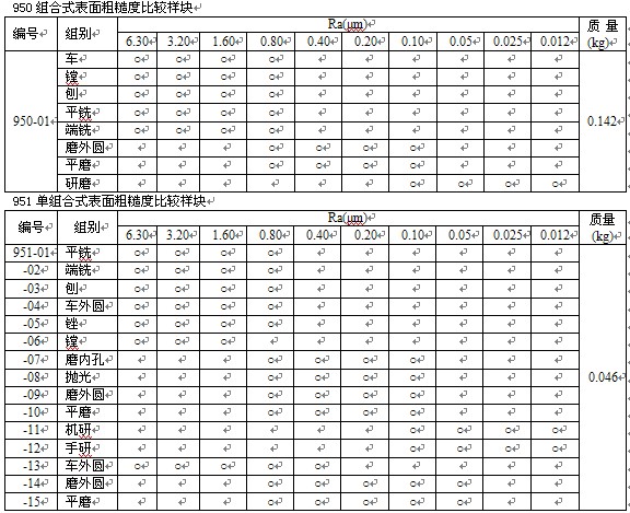 950組合式表面粗糙度比較樣塊,表面粗糙度比較樣塊是用比較法檢查零件表面粗糙度的一種量具,在機械工業(yè)生產(chǎn)中得到廣泛的應(yīng)用。符合GB標準。